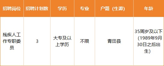 2025年浙江省丽水市青田县公开招考3名乡镇(街道)残疾人工作专职委员
